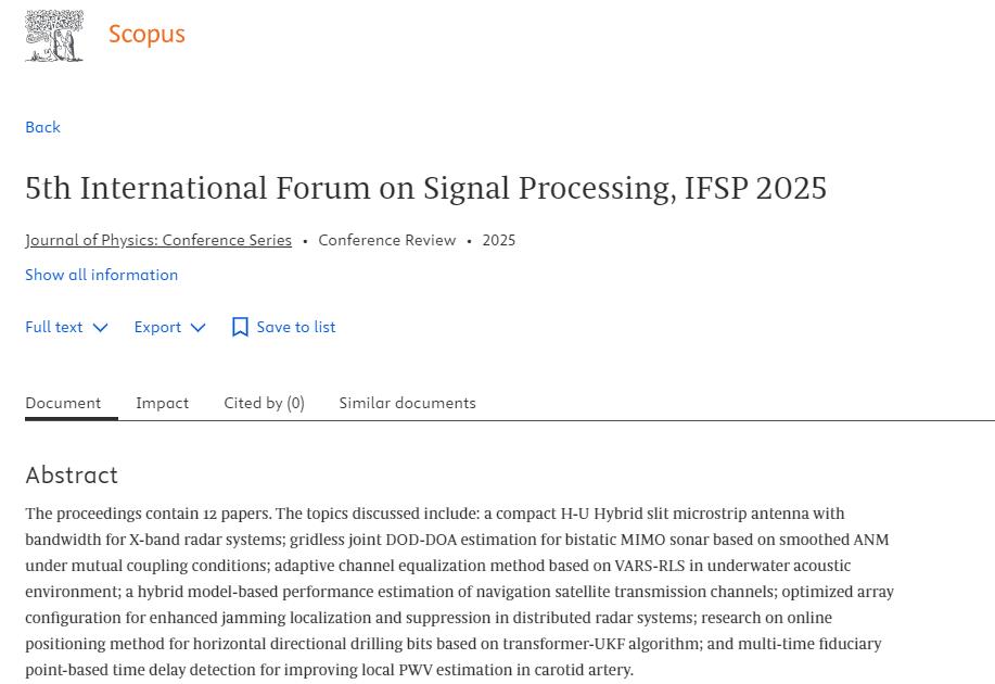 The conference proceedings of IFSP 2025 has been indexed by Ei Compendex and Scopus.